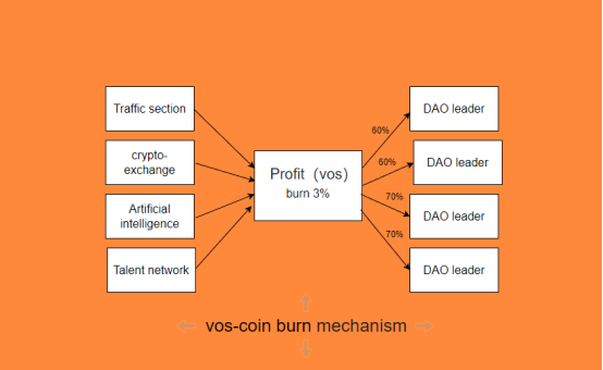 To ensure the interests of every Vos token holder, the Vorsi Academy will establish a deflationary economic model. Within the entire Vorsi ecosystem, the flow sector (with an expected market value of $500 million), Vorsi Exchange (with an expected market value of $300 million), AI service platform (with an expected market value of $200 million), and talent network (with an expected market value of $200 million), among other sectors, will have their profits subject to a 3% burn in Vos, with a large portion of the equity returned to the